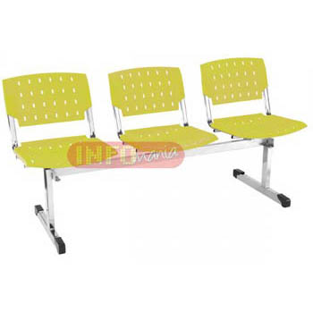 Bancos longarinas cromados 3 lugares amarelo sólido