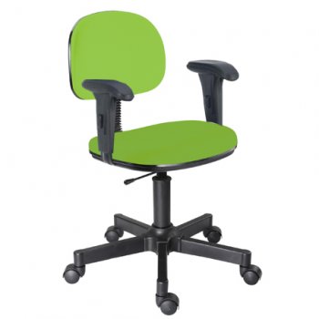 - Cadeira giratória estofada em courvin de alta resistência e espuma injetada de média densidade. Assento com regulagem de altura, encosto com regulagem de profundidade, rodízios de roda dupla, base giratória metálica com capa de polipropileno. Opção de braços metálicos modelo digitador com apoios de polipropileno.