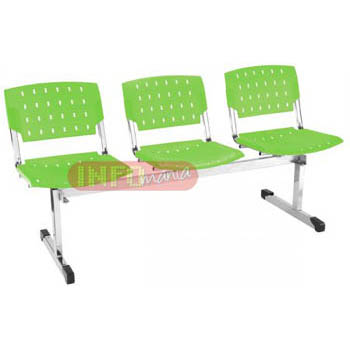 Com encosto em tubos paralelos esq"uidistantes oblongos de 13x30 mm de parede 1,2 mm. Acabamento com insertos plásticos de polipropileno injetado;