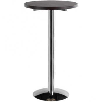 Mesa bistro cromada alta tampo redondo texturizado de madeira (fórmica) Milano 601 para eventos, lancherias, praças de alimentação.